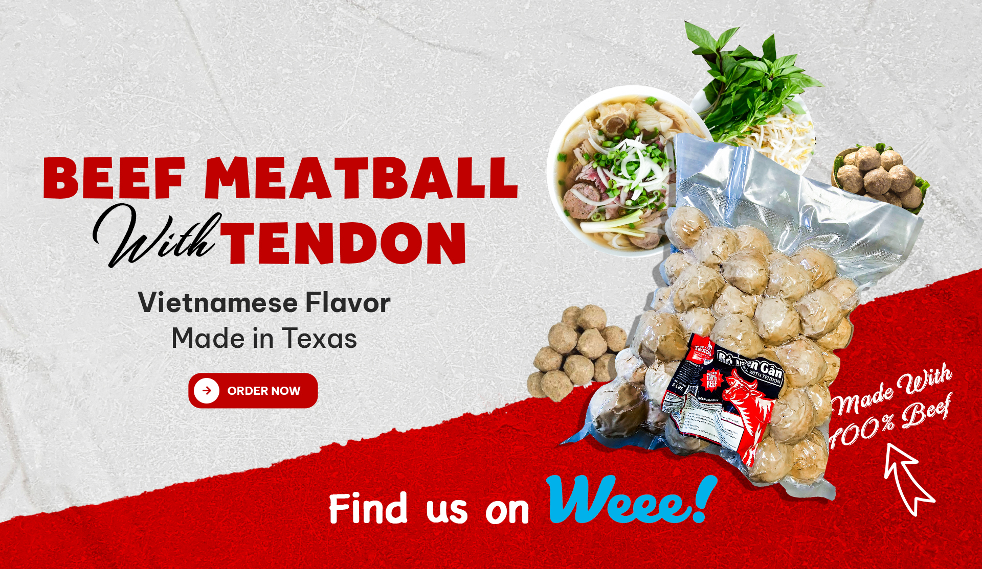 Texas Beef Meatball With Tendon are crafted from premium beef and rich, chewy tendon for that signature bouncy, flavorful bite. Inspired by bold Texas flavors and Vietnamese culinary roots, our beef balls are clean, delicious, and easy to cook – perfect for Phở, noodles, hotpot & more..